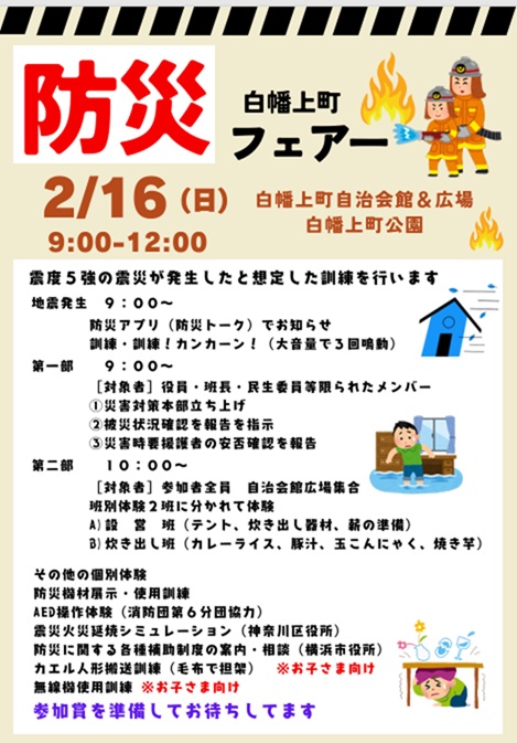 しらかみ(12月号)で取組みの方針をお知らせしました。以降横浜市・神奈川区の方々のご参加を頂き準備会議を重ねてきました。3月31日の役員会で自治会として、横浜市へグループ登録をし市・区の支援を頂きながら進めることを決定しました。(4月6日に登録完了しました)