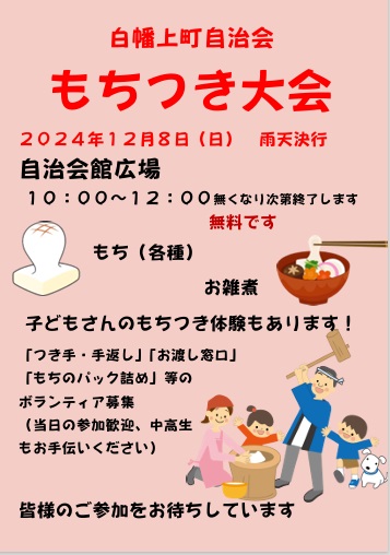 12月26日(木)~28日(土)19:30から白幡上町自治会館スタートで実施。