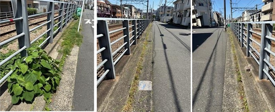 ②東横線線路沿いの道路わきの雑草の刈り取りを行いました。