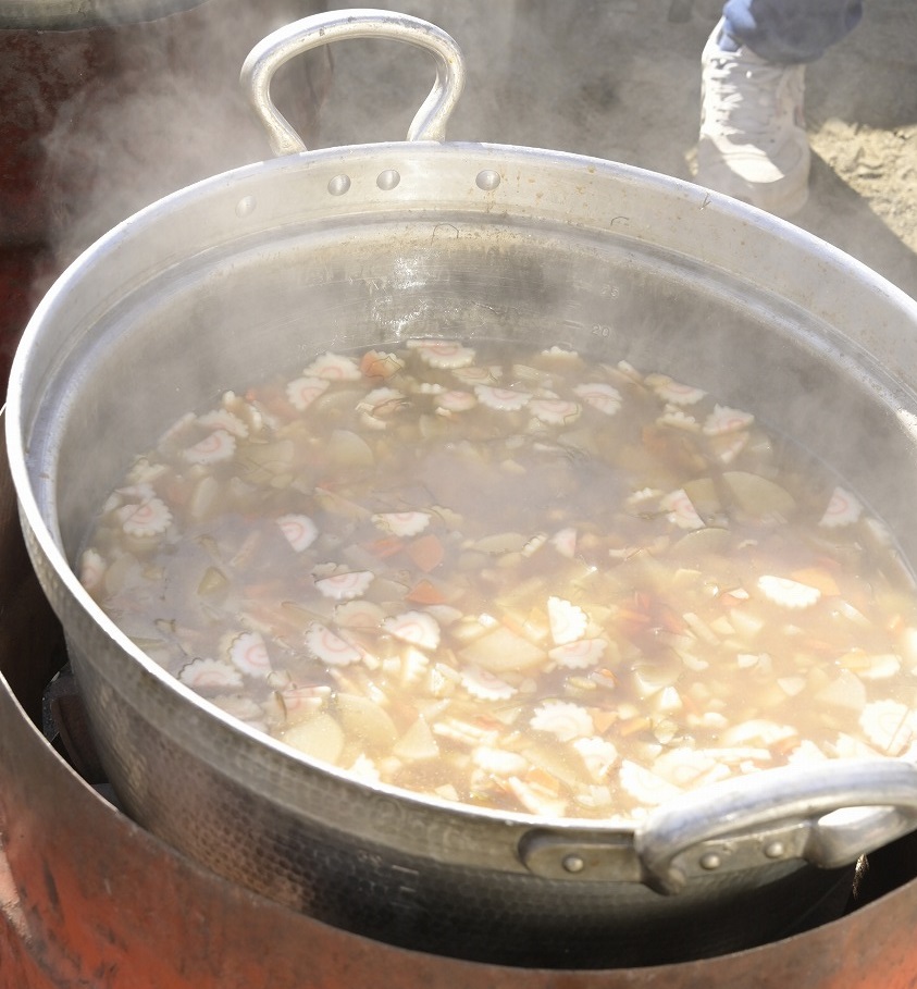 越後の餅米でついたもちや大鍋で炊きこんだお雑煮は皆さまに好評でした。
