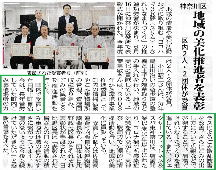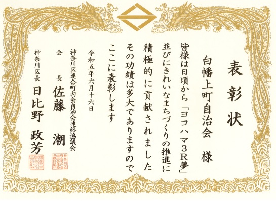 「ヨコハマ3R夢・きれいなまちづくり」推進功労者・団体表彰