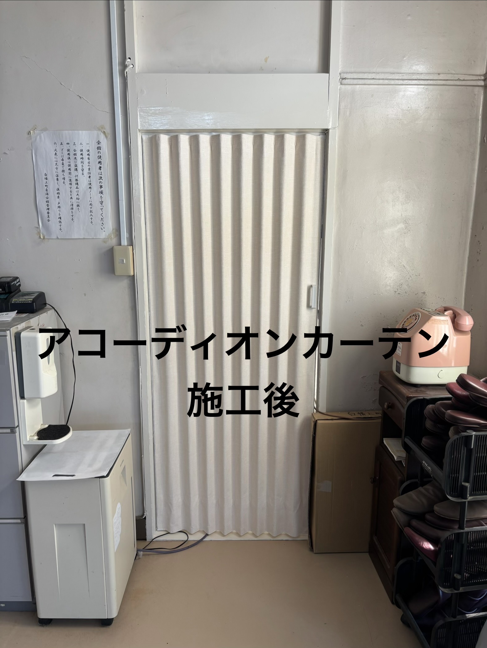 勝手口とホール間もアコーデオンカーテンで仕切り