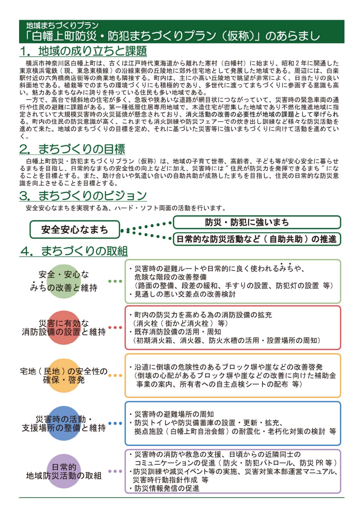 しらかみ(12月号)で取組みの方針をお知らせしました。以降横浜市・神奈川区の方々のご参加を頂き準備会議を重ねてきました。3月31日の役員会で自治会として、横浜市へグループ登録をし市・区の支援を頂きながら進めることを決定しました。(4月6日に登録完了しました)